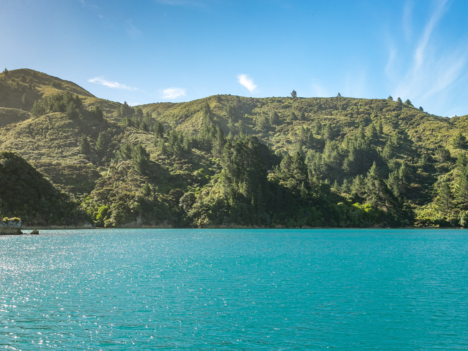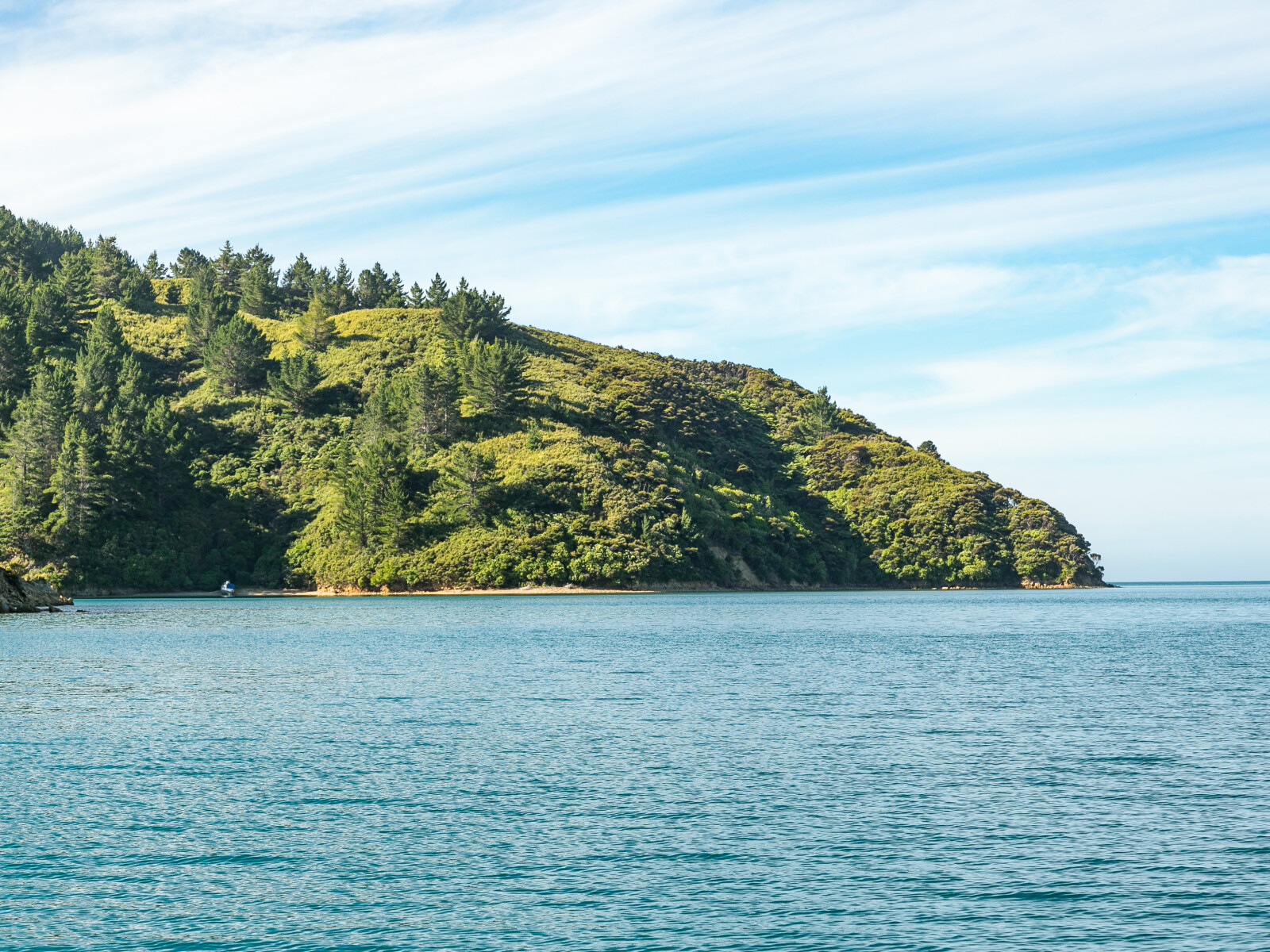 Allman Bay has shelter from all winds and is one of the few bays with VHF reception or phone reception. On the northern side, the anchorage is protected from W to NE winds and on the other side the anchorage is protected from E to S to W winds. The holding is good and in the southern anchorage a stern line is necessary. Care should be taken to give the southern entrance point to the bay a wide clearance because of the long reef of rocks that is covered at high water.