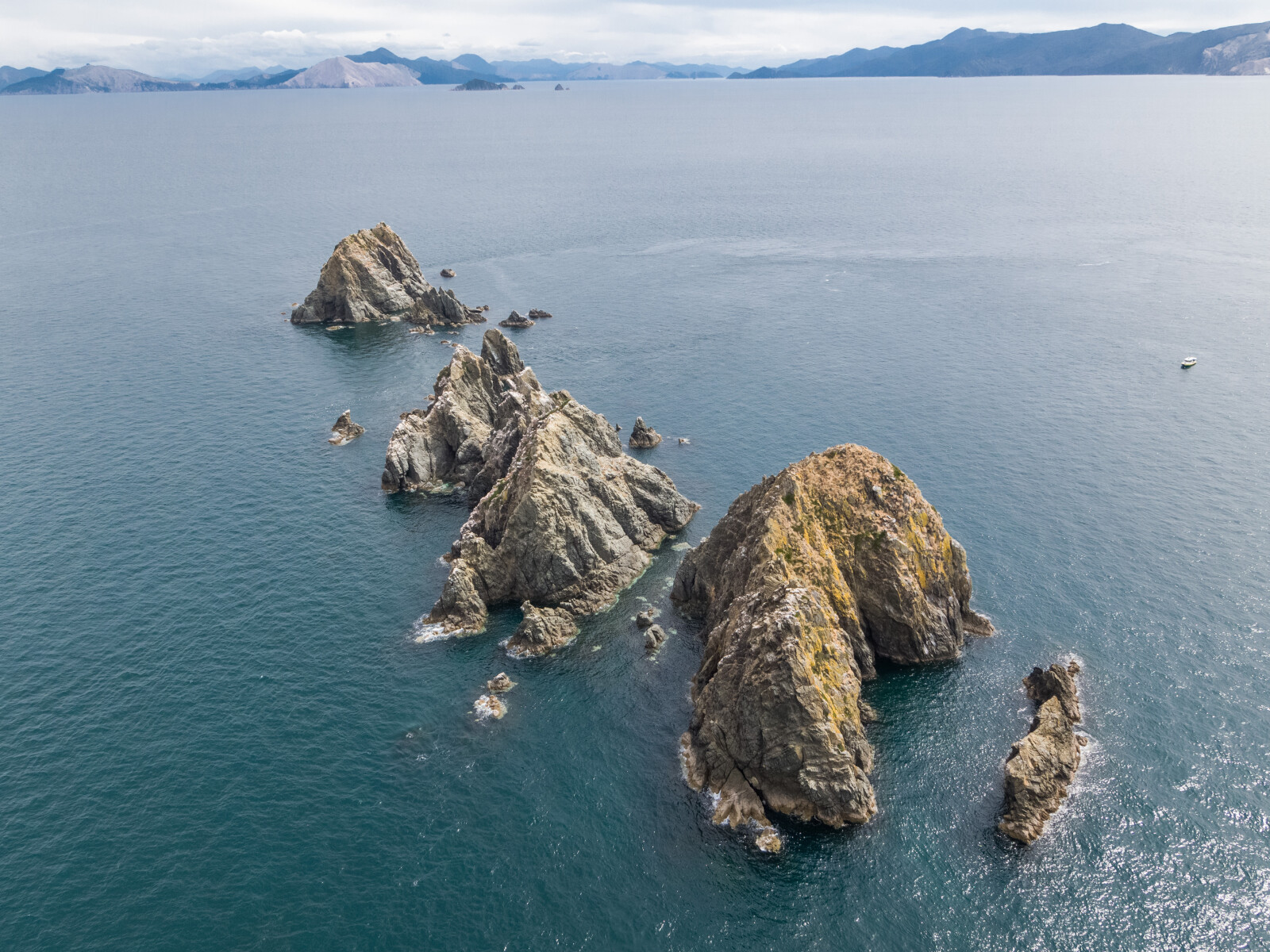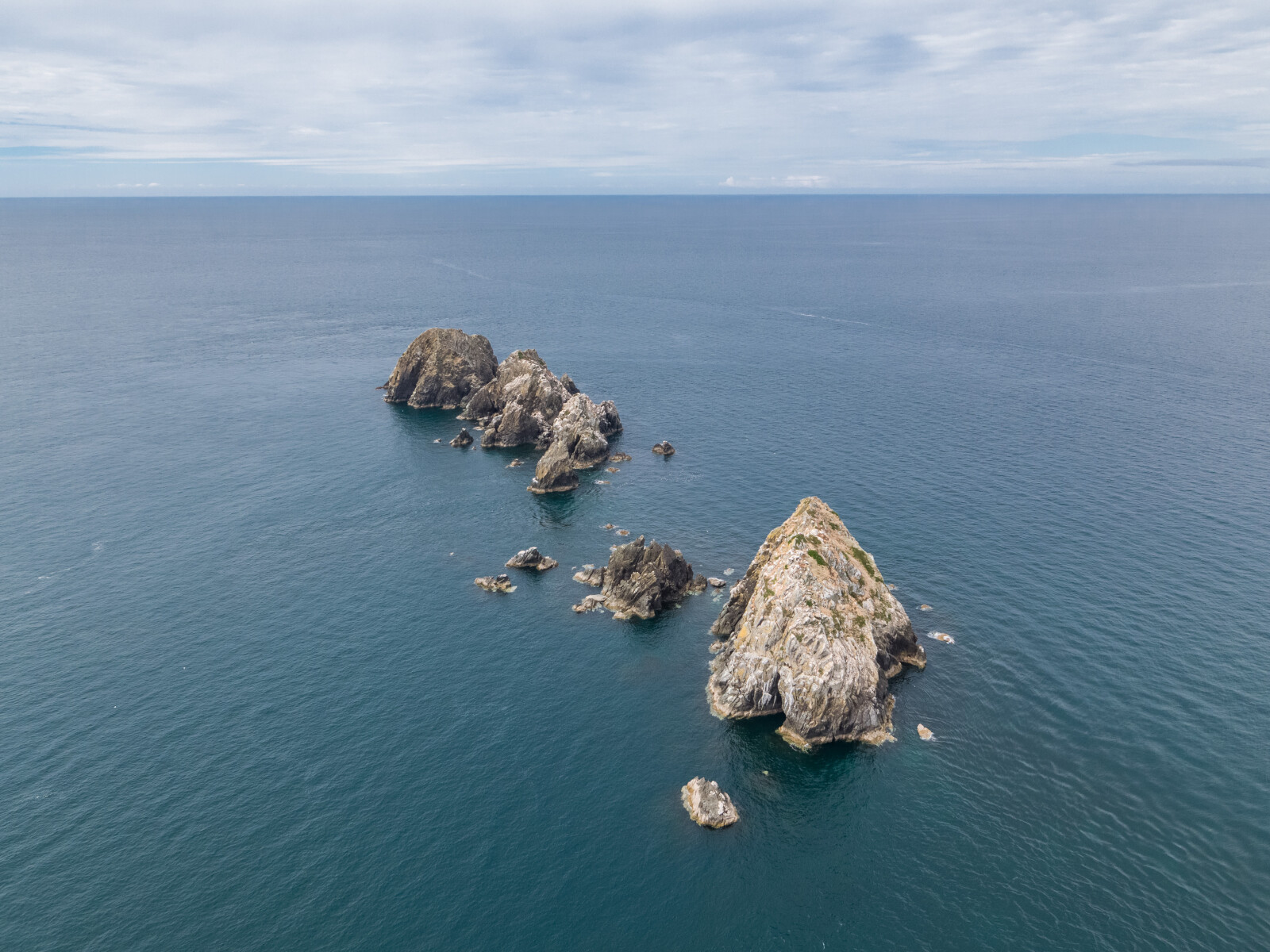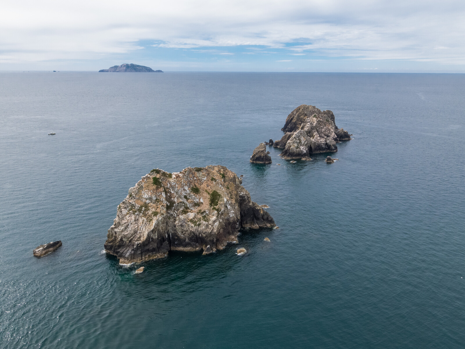 These are approximately three miles to the east of the Rangitoto Islands. There are no outlying dangers and no place for overnight anchorage. The rocks are up to 20 m high, spectacular in appearance and usually a good fishing spot.