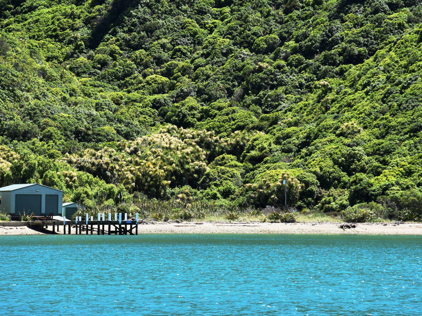 N sector winds tend to be funnelled across from Umuwheke Bay and blow out into the channel with some force. The eastern side of the head of the bay gives best shelter in SE to S winds.