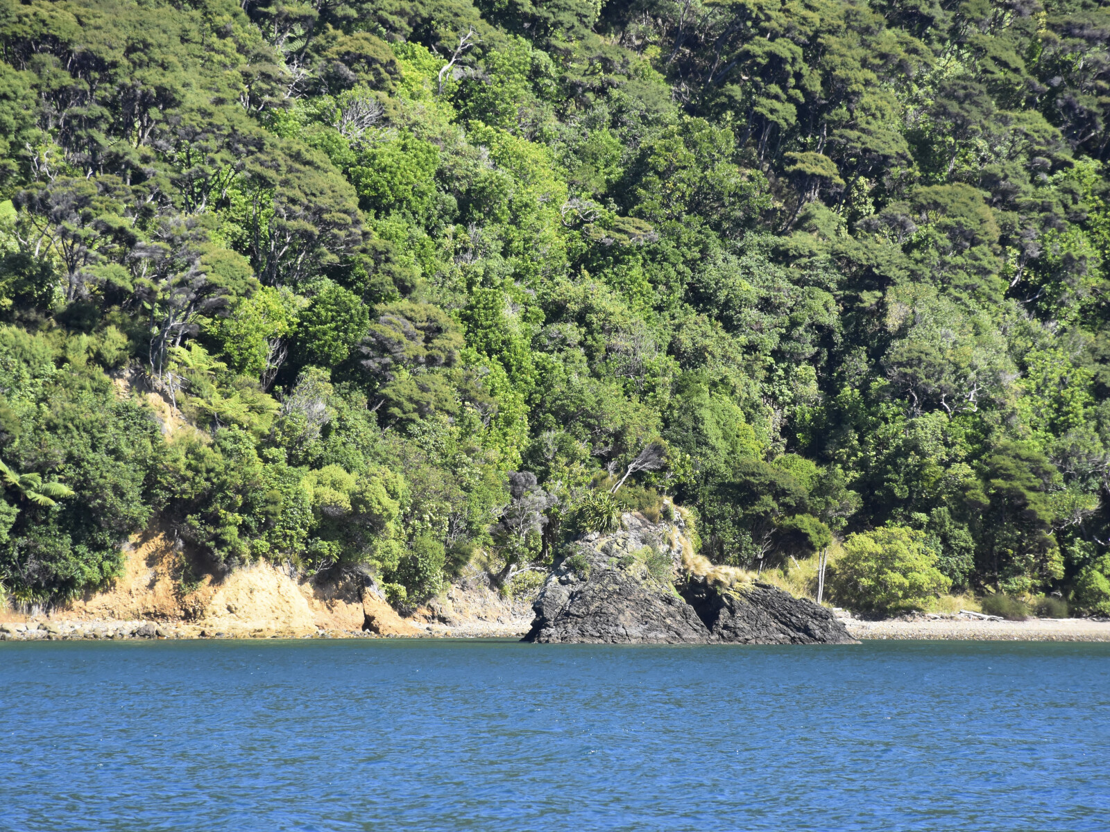 This bay hosts a small Department of Conservation campsite.1