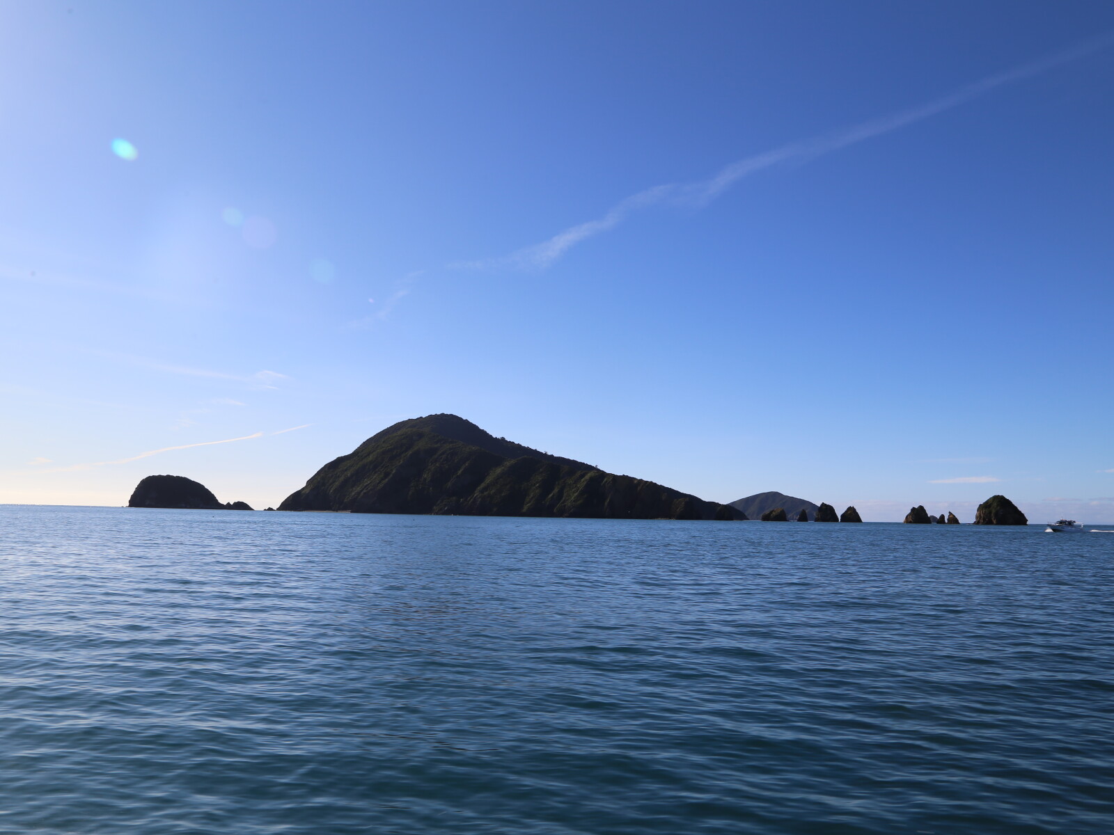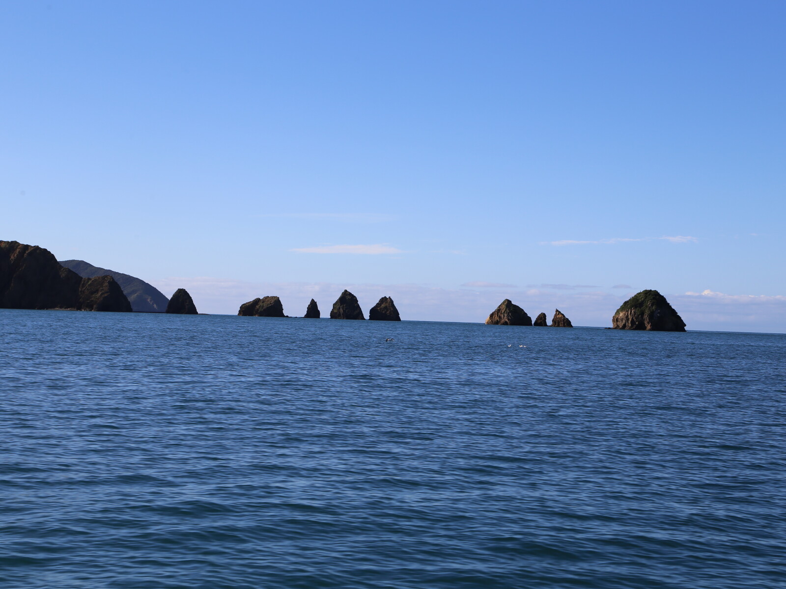 These islands stand at the entrance to Pelorus Sound, have a maximum height of 240 m, with rocky shores and little in the way of quiet, sheltered anchorages.