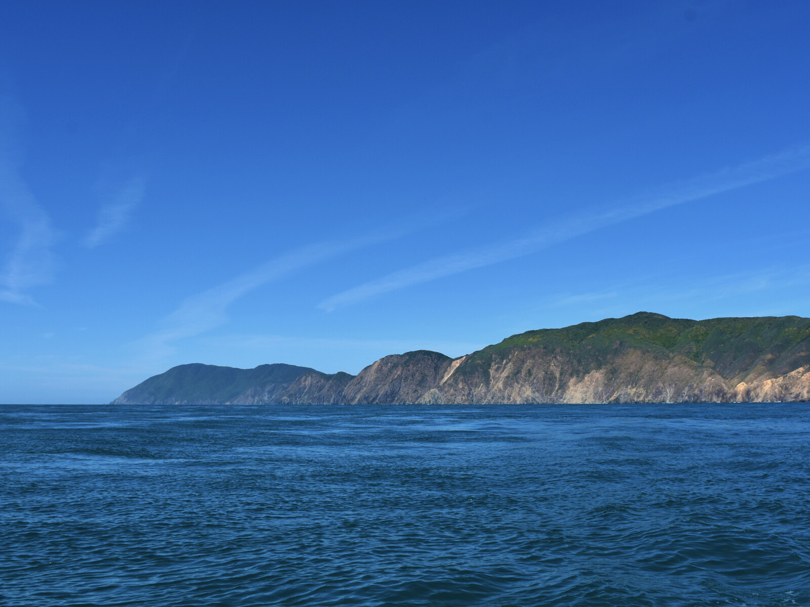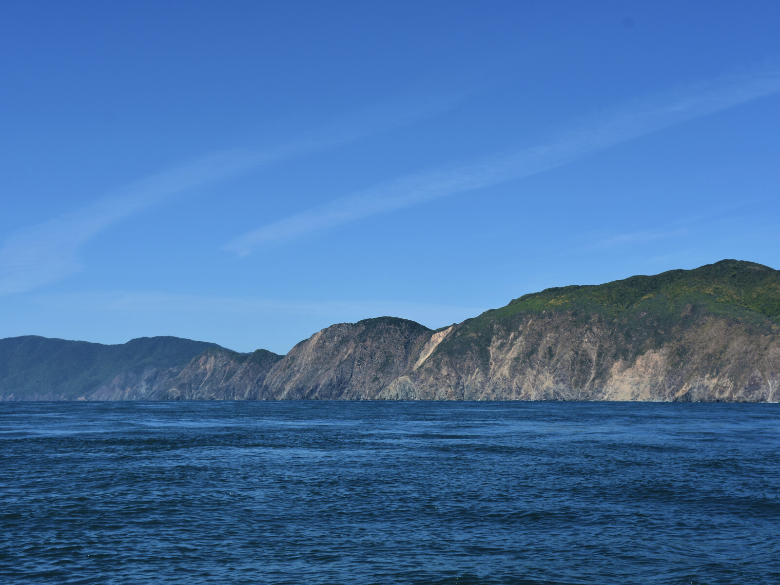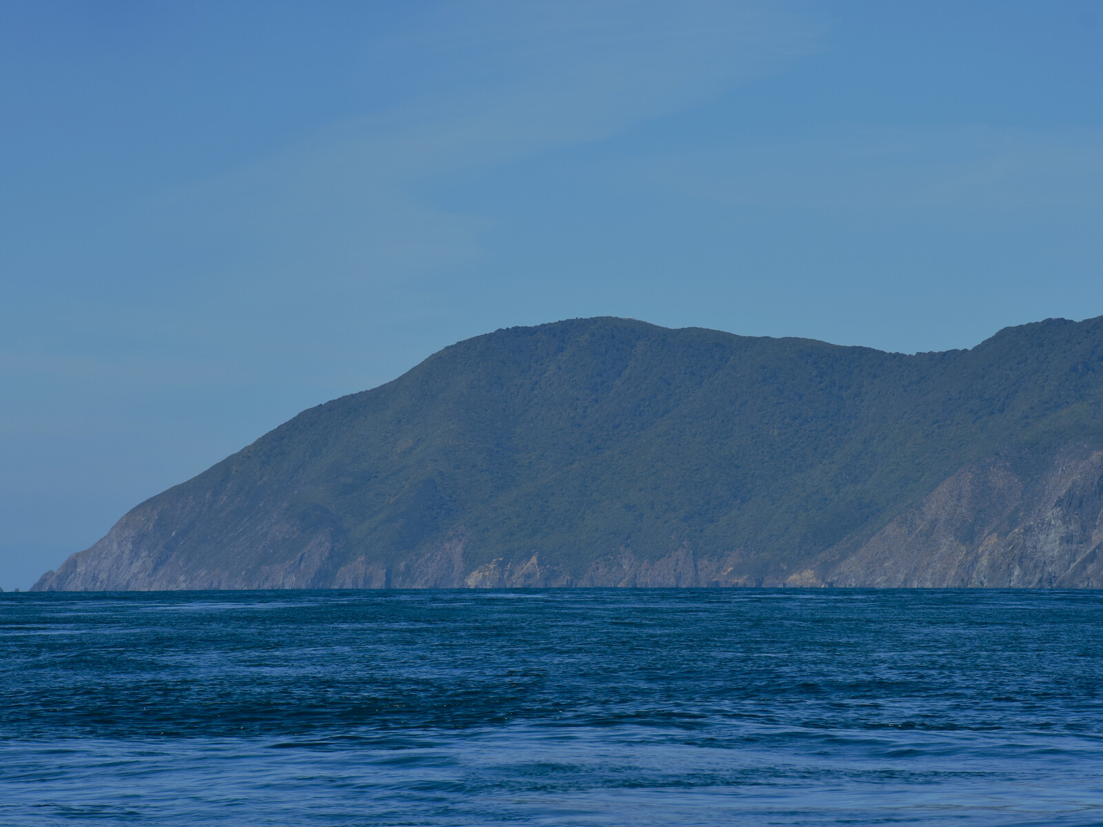The coast here rises steeply and there are no beaches. Rocks extend the full length of the shore with deep water up to them. The sea along this coast is relatively calm in NW winds. Tidal streams set north with the rising tide and south with the falling tide. Within a mile from the shore, the tidal stream changes about half an hour after the Tory Channel streams. Further out, the tidal streams are less predictable and the table on chart NZ46 should be consulted.