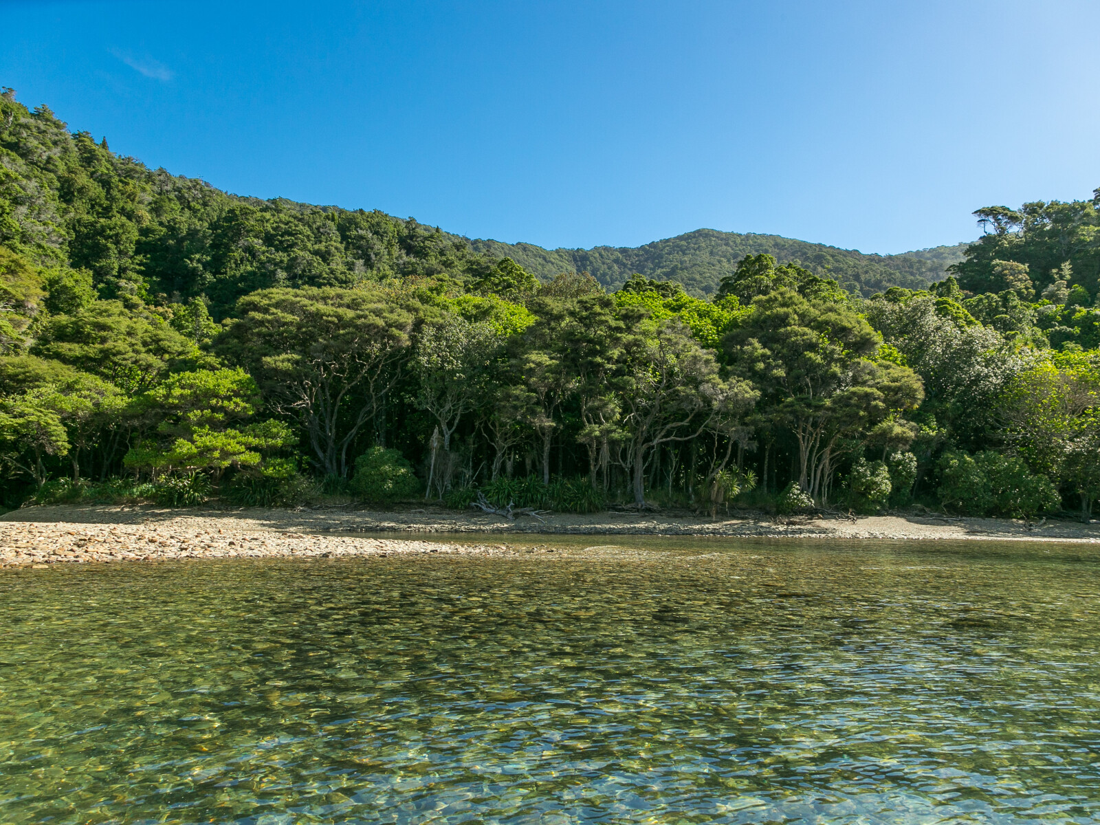This arm is very pretty as the surrounding hills are covered by native bush. All of the headlands should be given a clearance of 100 m to avoid rocks.
