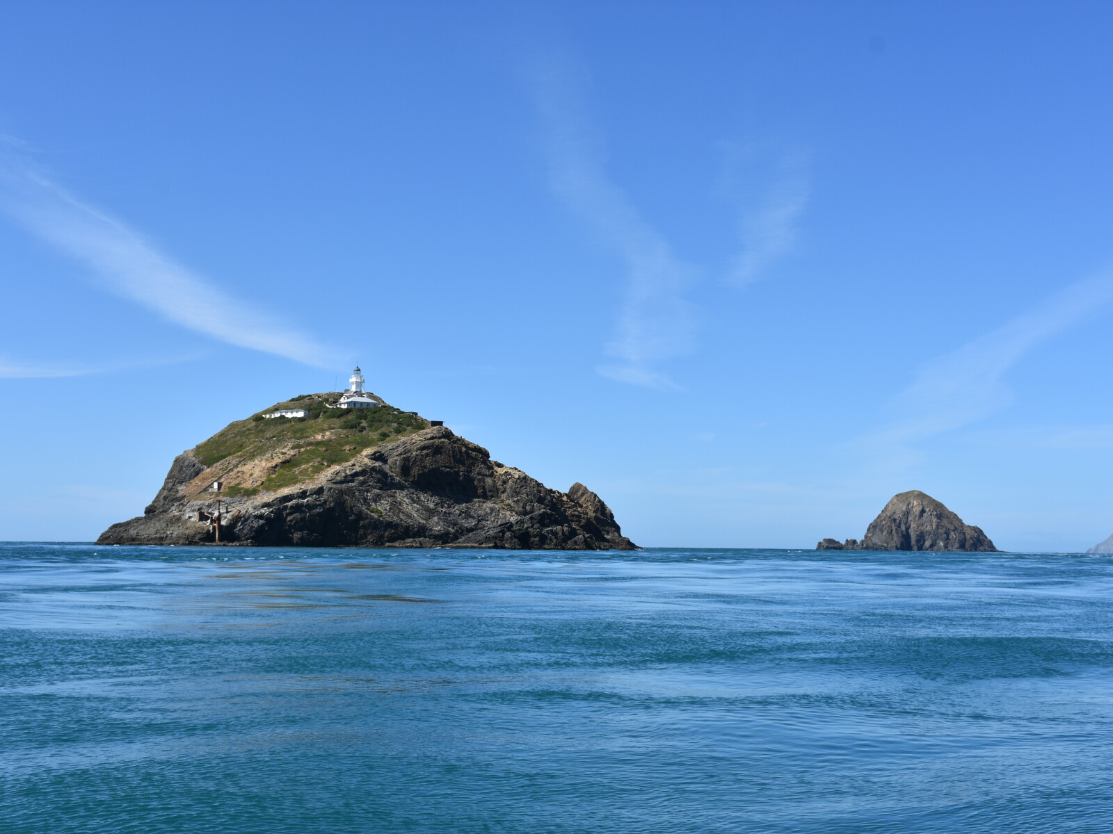 The main light has four white revolving beams which shine every 10 seconds. This light is extremely powerful and can be seen from the Parramatta side of the Cook Strait and from Kapiti. There are also two fixed red lights sectored to cover Cook Rock to the north-north-west and Awash Rock to the south-south-west of The Brothers.