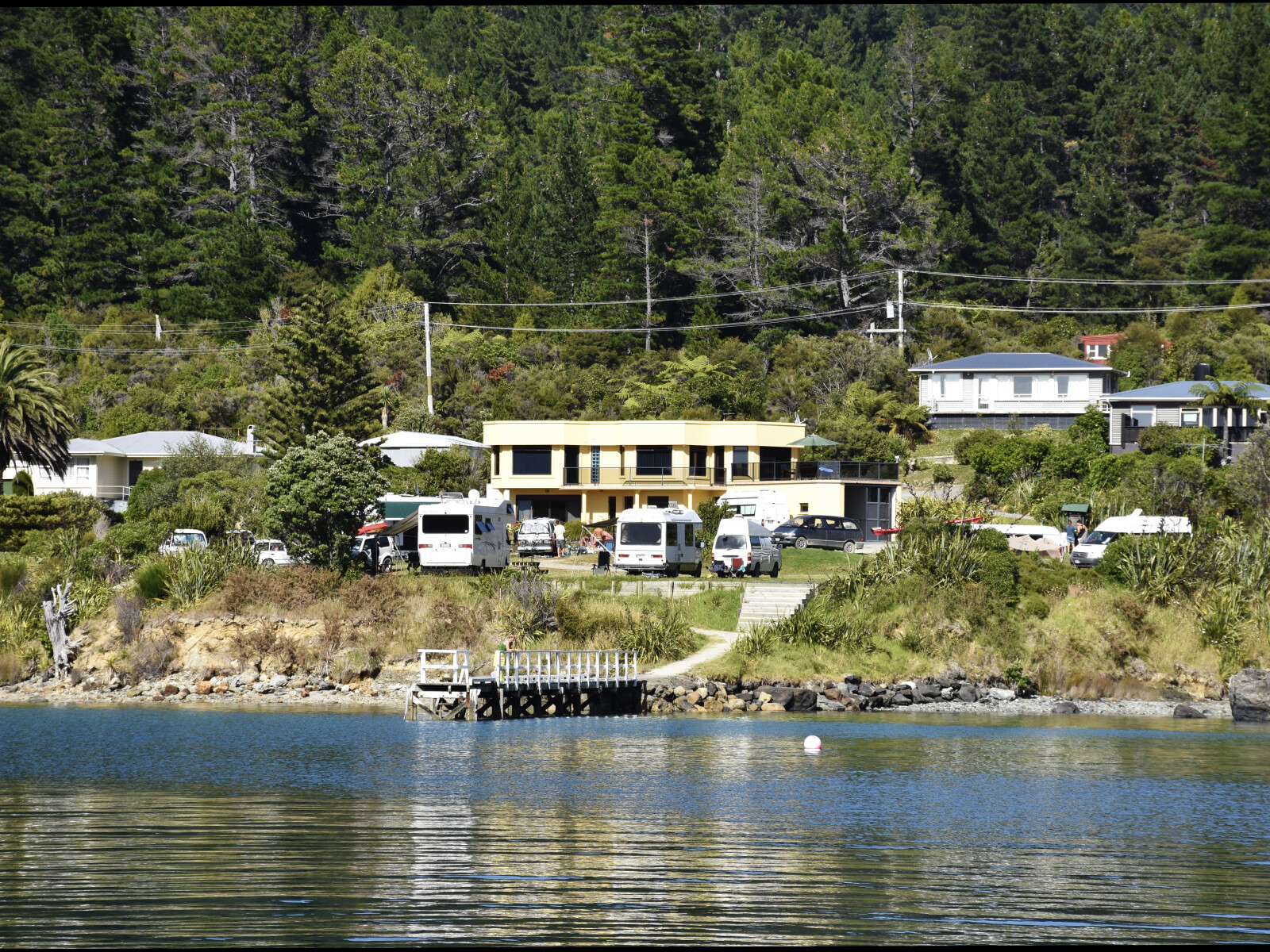 The head of the bay is shallow and has a sandy beach. Fuel and water are available from the public jetty.