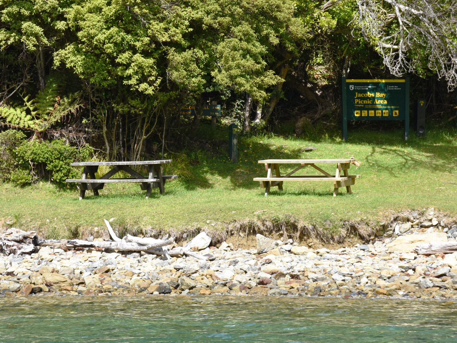 Jacobs Bay boasts a picnic ground, toilets, fresh water and camping space on the foreshore.