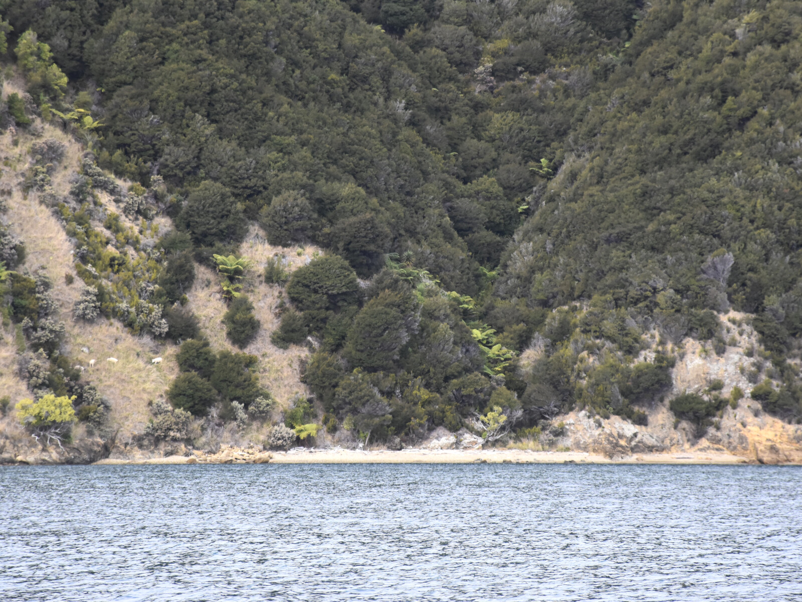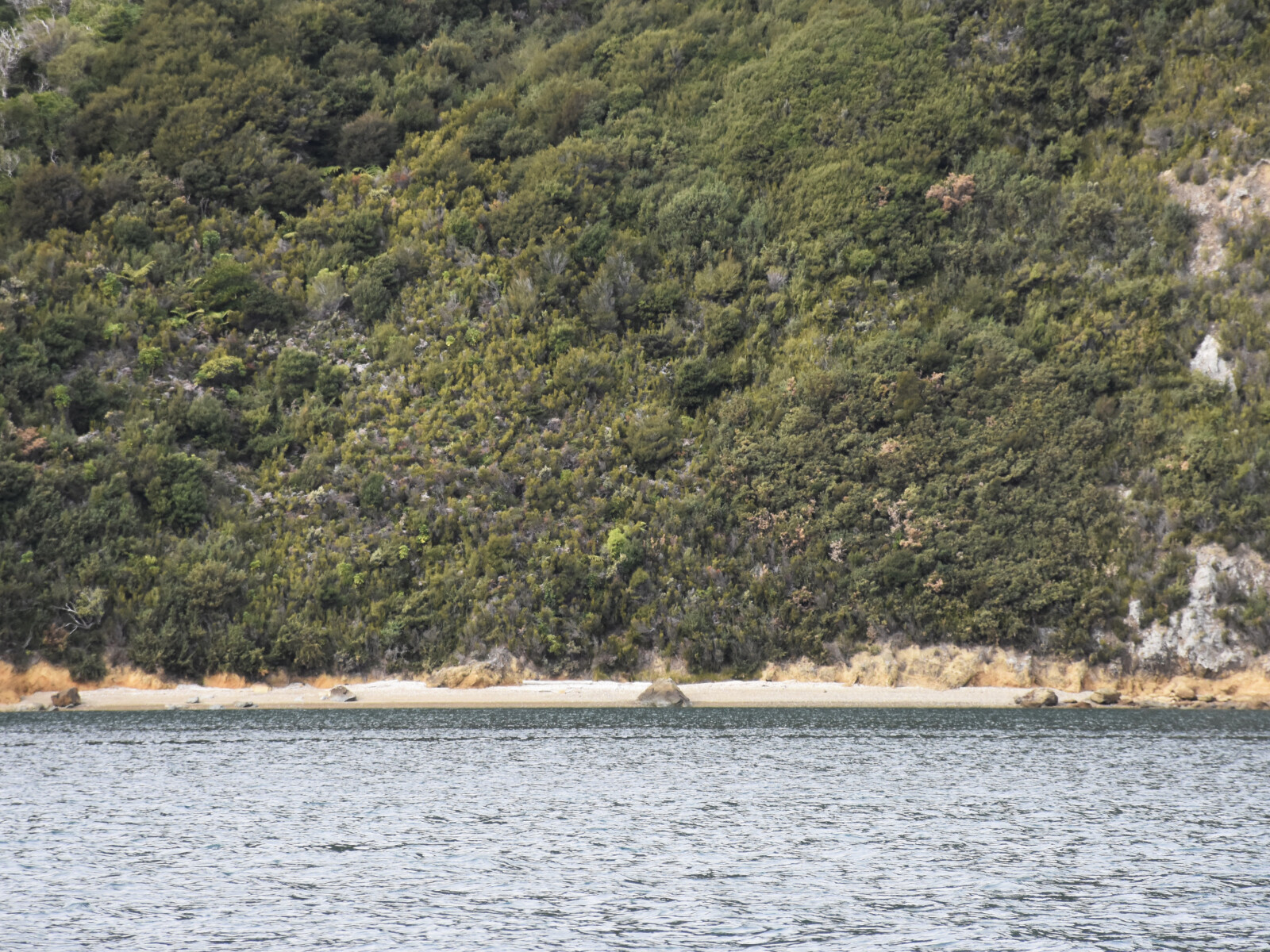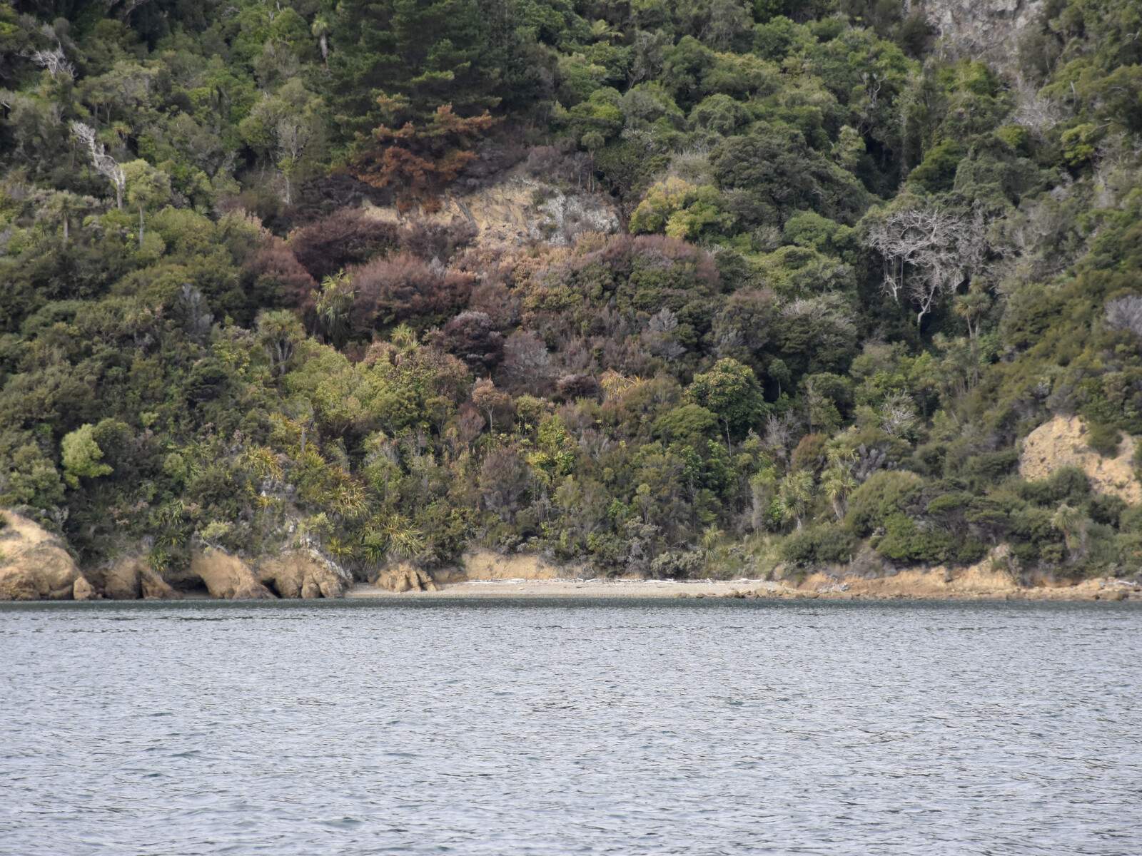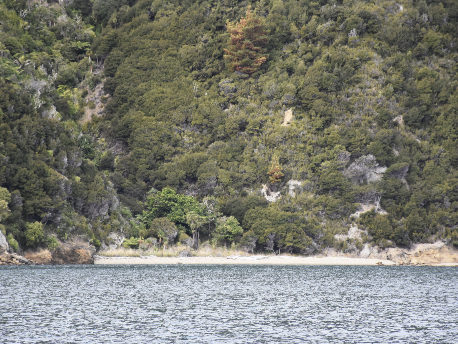 The sandy beach is indicative of the fact that the bay is open to prevailing W to NW winds and not recommended as an anchorage in these conditions.