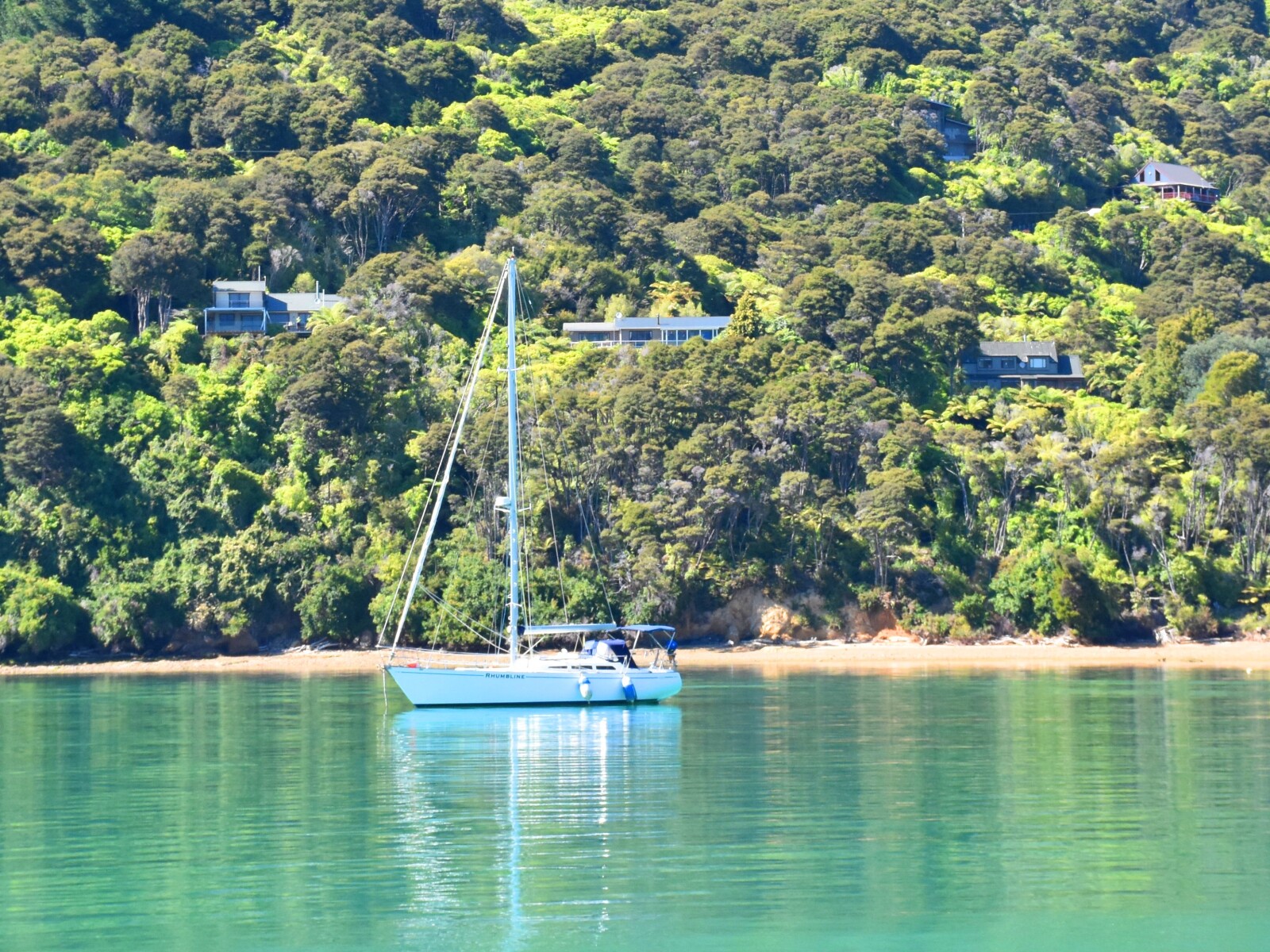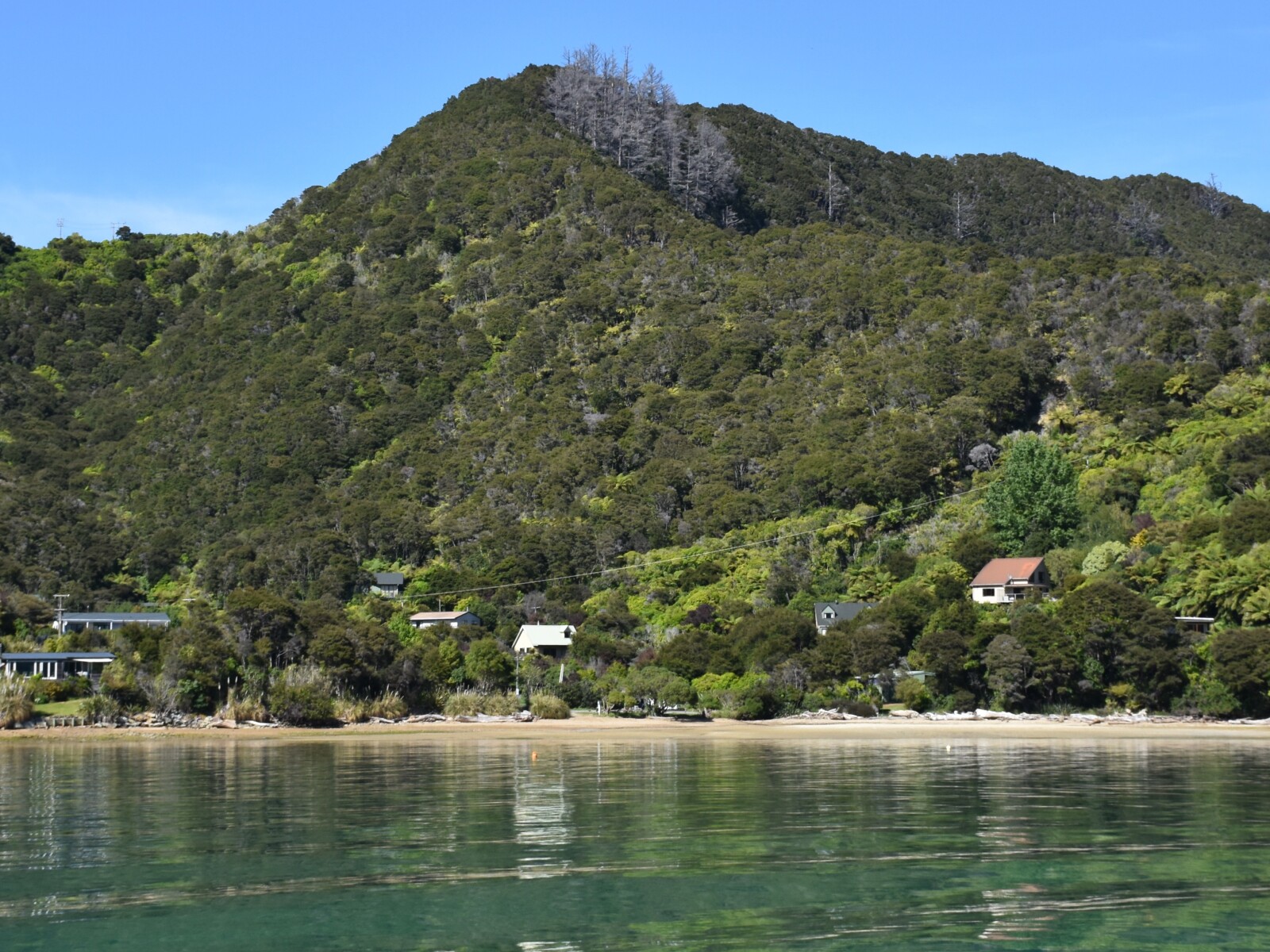 The Raetihi guest house is situated in this bay. The bay is a good anchorage in winds from SW to N and will even provide good anchorage in moderate winds from E to S to SW, but there is poor holding in fine mud where the stream from the N enters the bay.