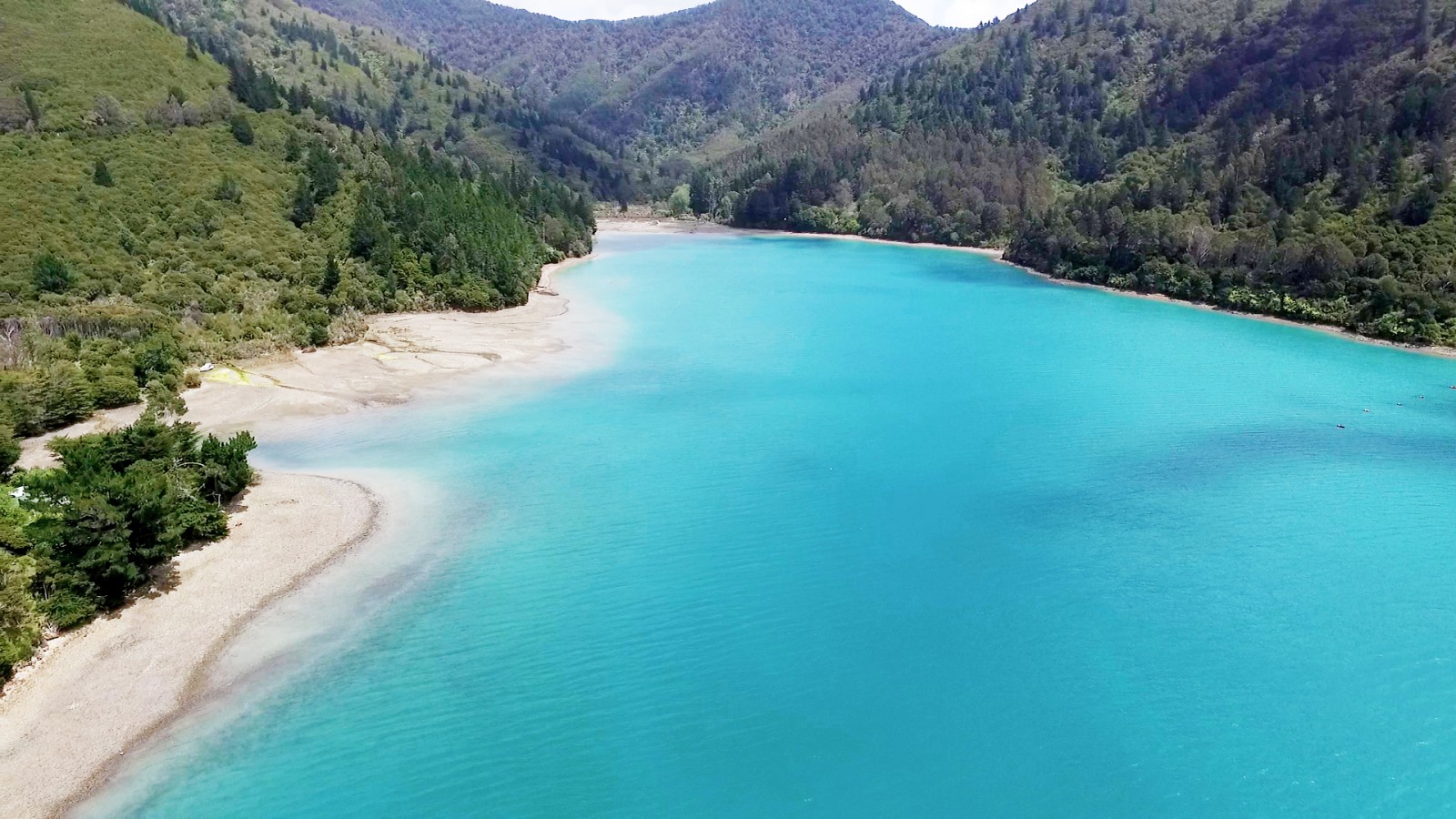 Maori Bay is on the western side of the Hikapu reach. It is shallow but it provides good holding.