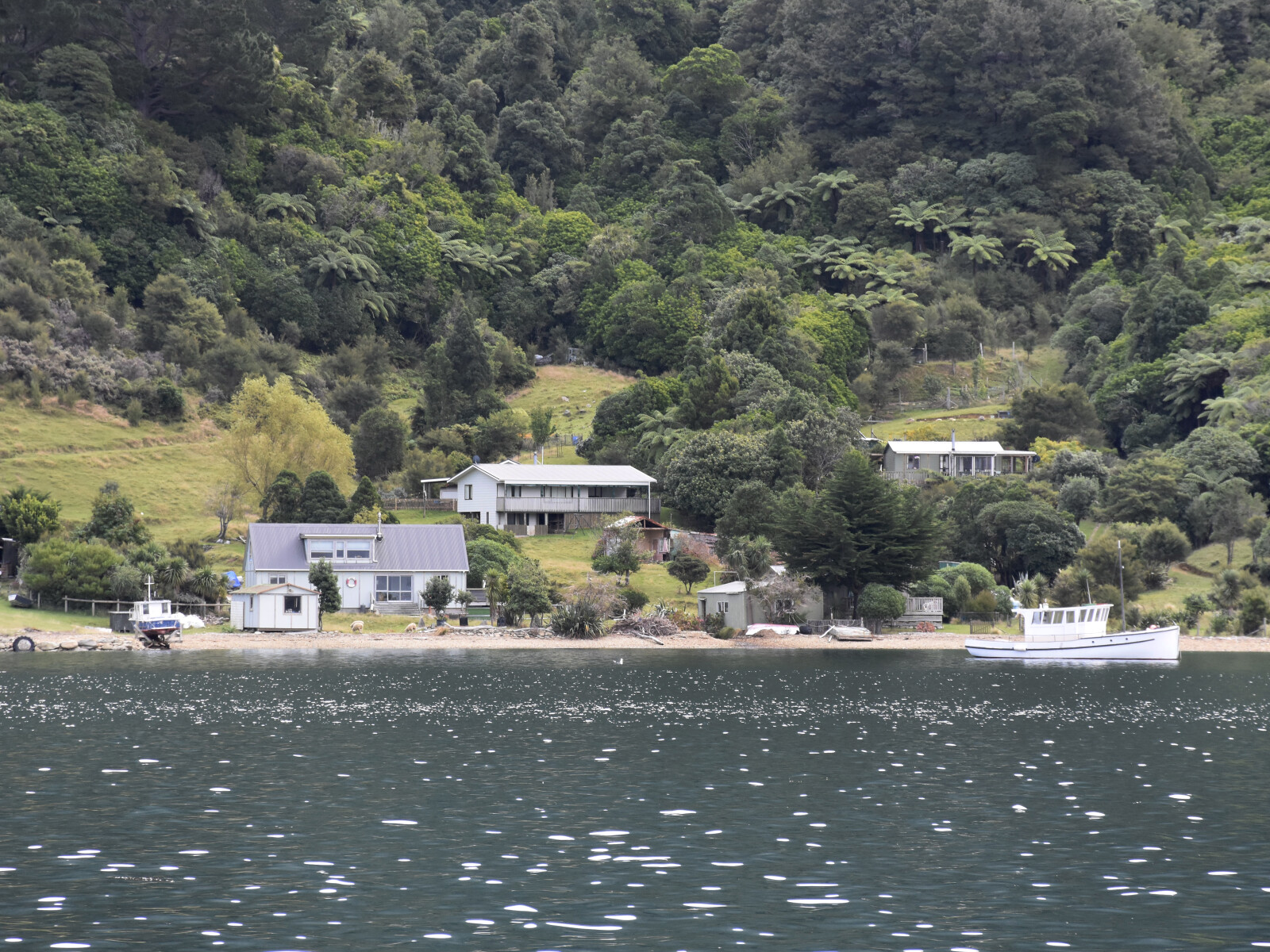 It is possible to put a stern line ashore and this bay is a good place to wait for bad southerly weather to pass if you wish to be near the entrance of Pelorus Sound.