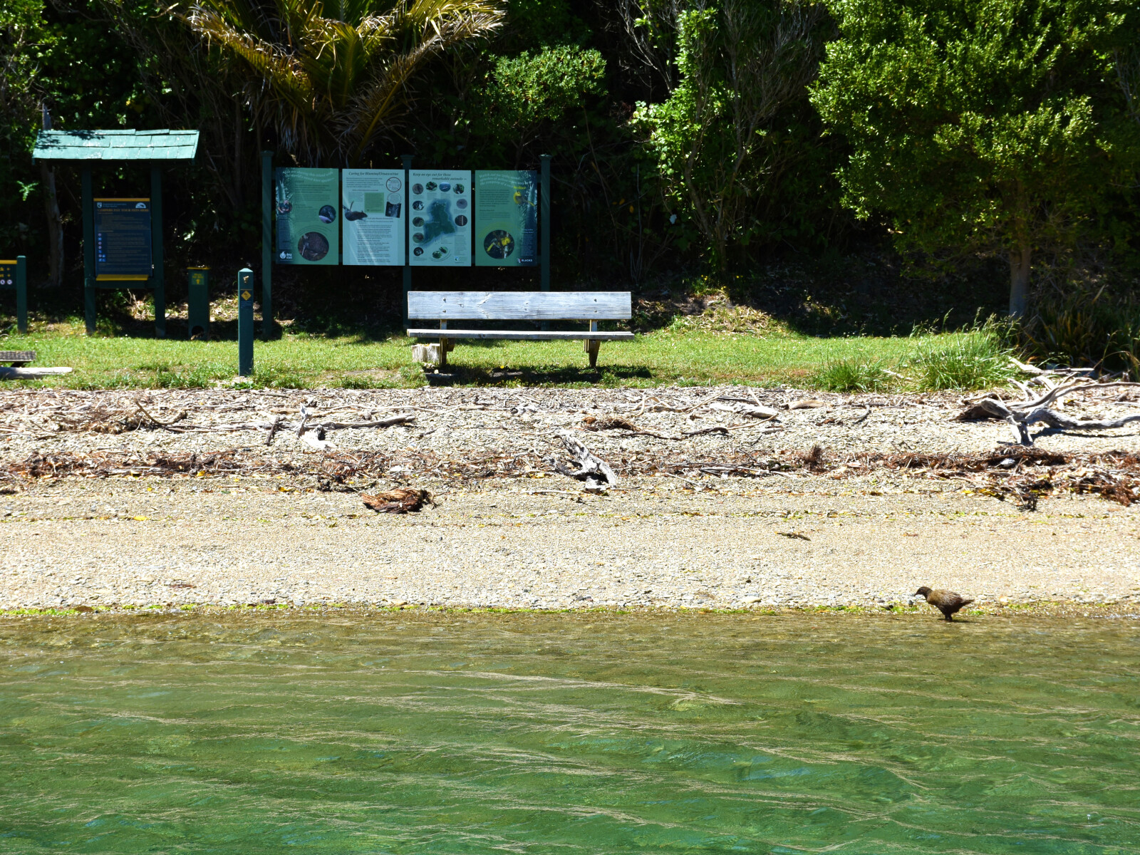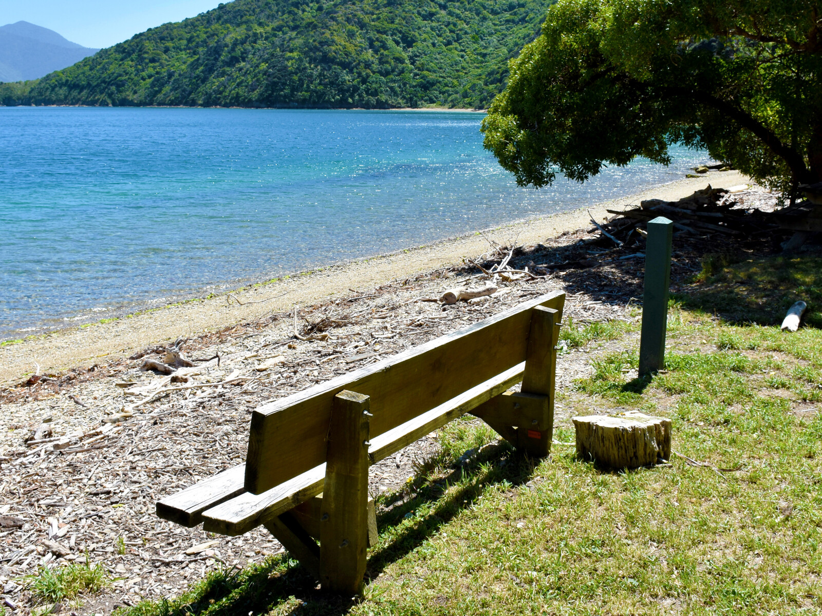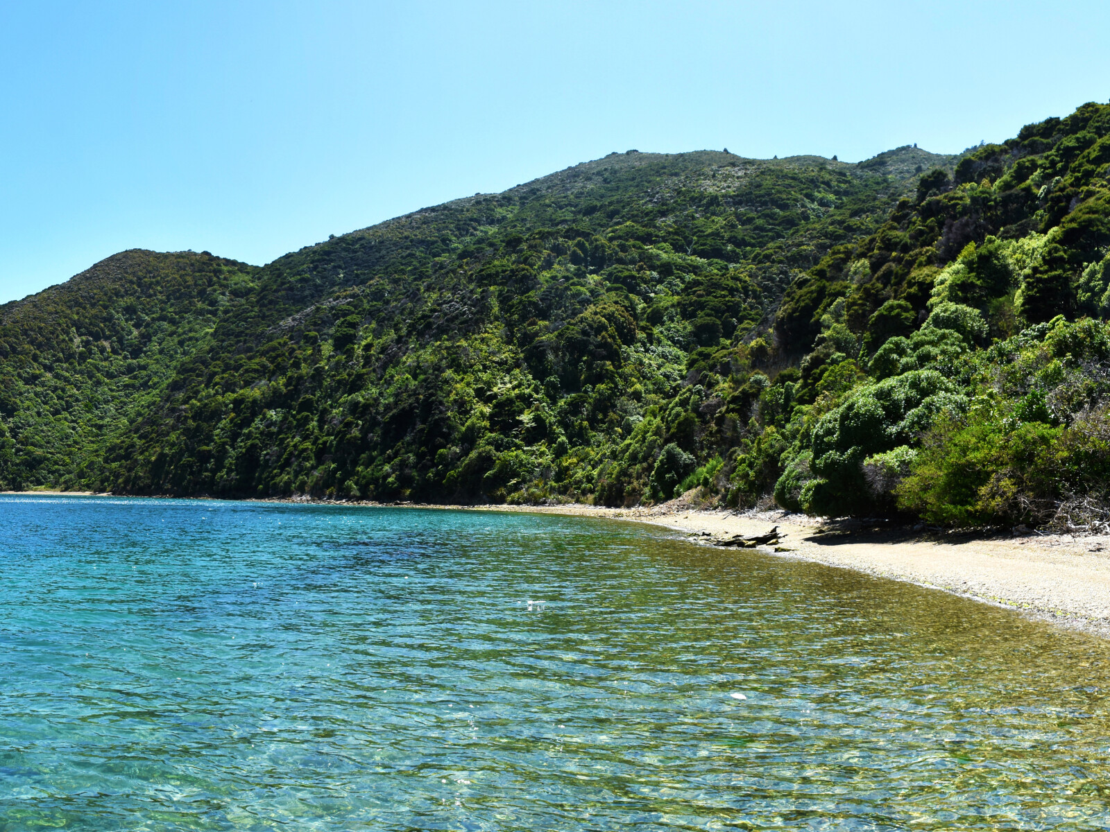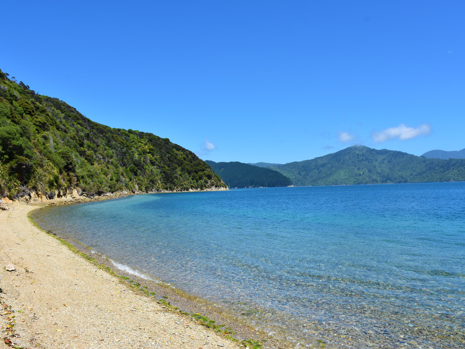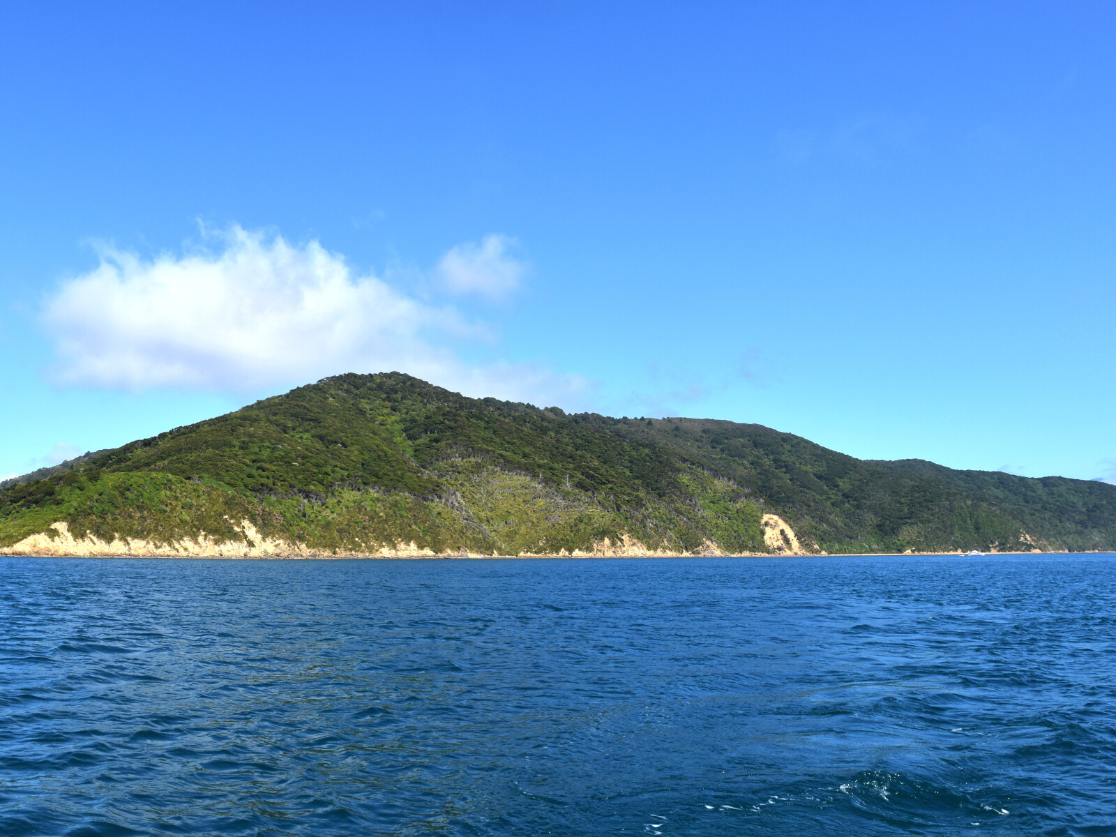 This large island stands in the middle of Queen Charlotte Sound seemingly guarding it from the outer sea. The island is 295 meters high and two point three miles long from northern to southern tip. There are several shingle beaches around the whole coast and it is usually possible to find pleasant picnic spots on the leeward shores.