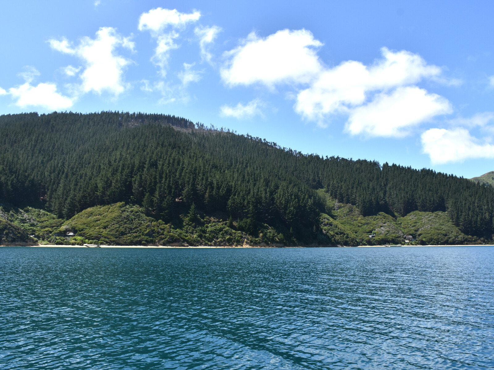There is a cairn, erected by the Mana Cruising Club in 1973, at the southernmost end of the beach.
