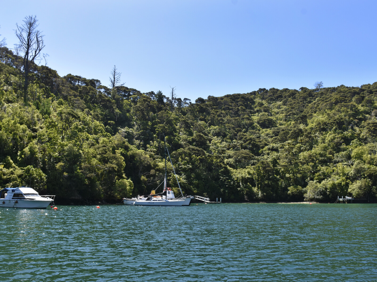 The western arm of this cove is more open and sunnier and as a result a little more exposed. This arm of Double Cove should not be used in southerly winds.