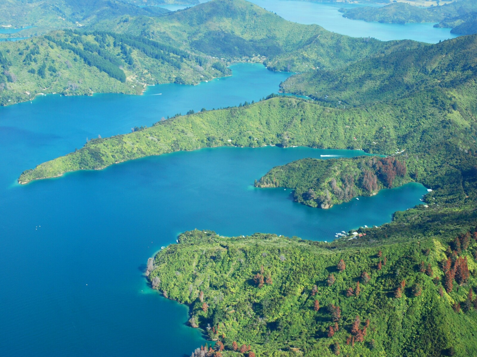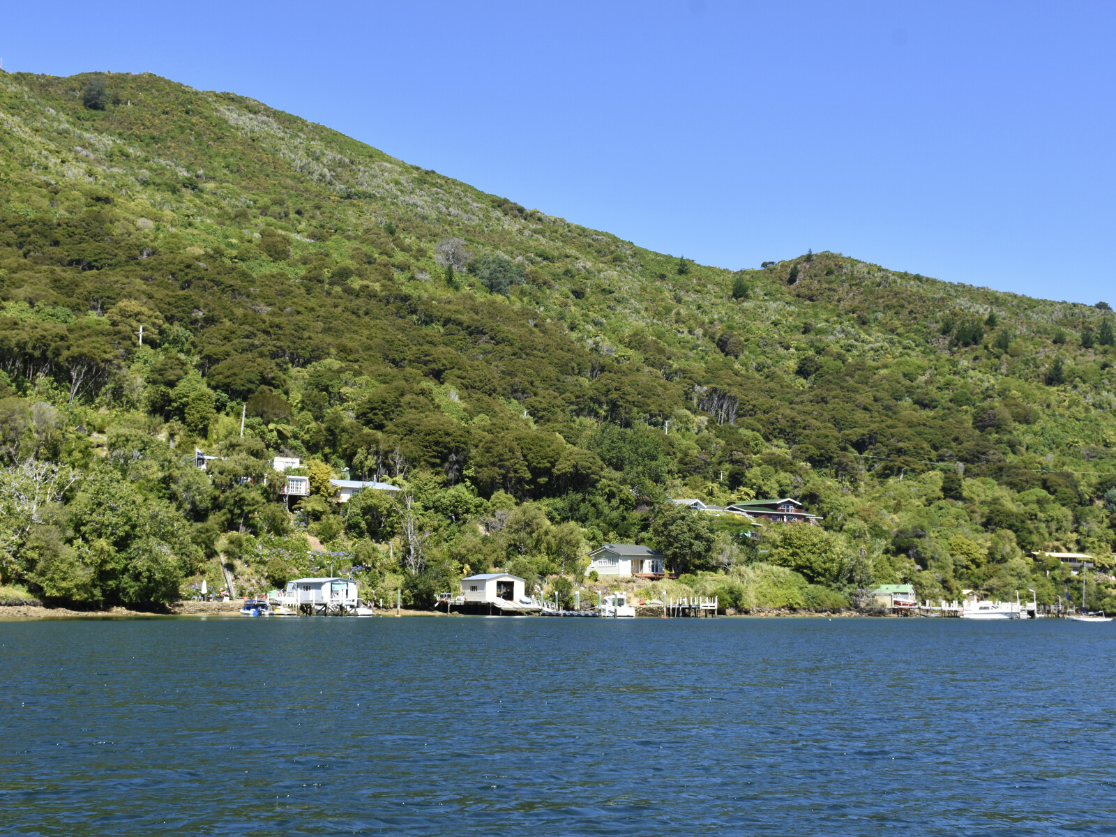There are a large number of moorings along the western shore but it is usually possible to find an anchorage here with a line ashore.