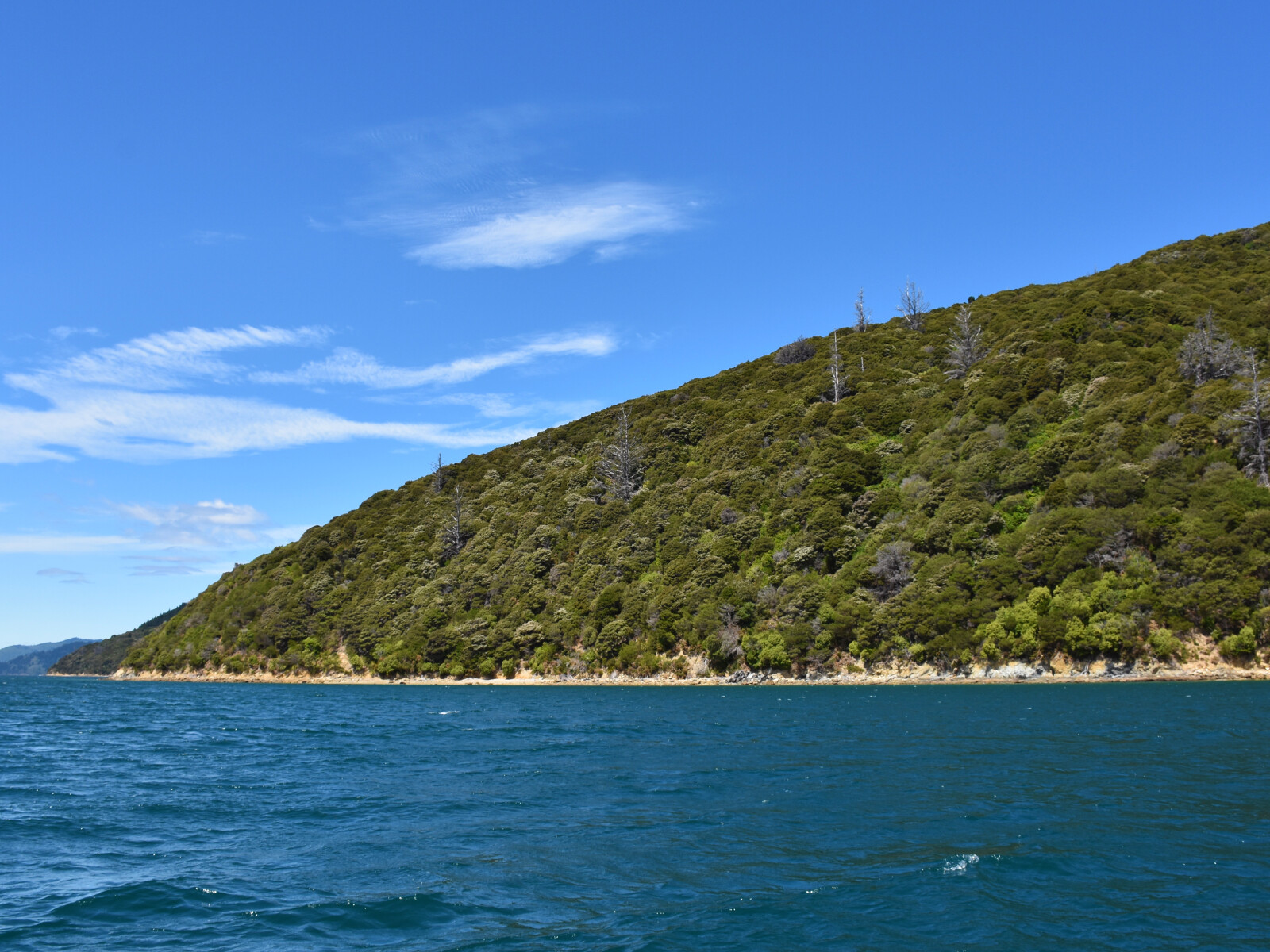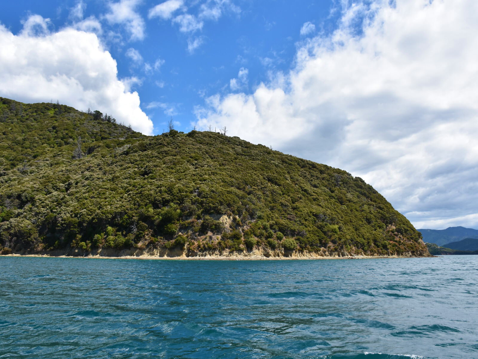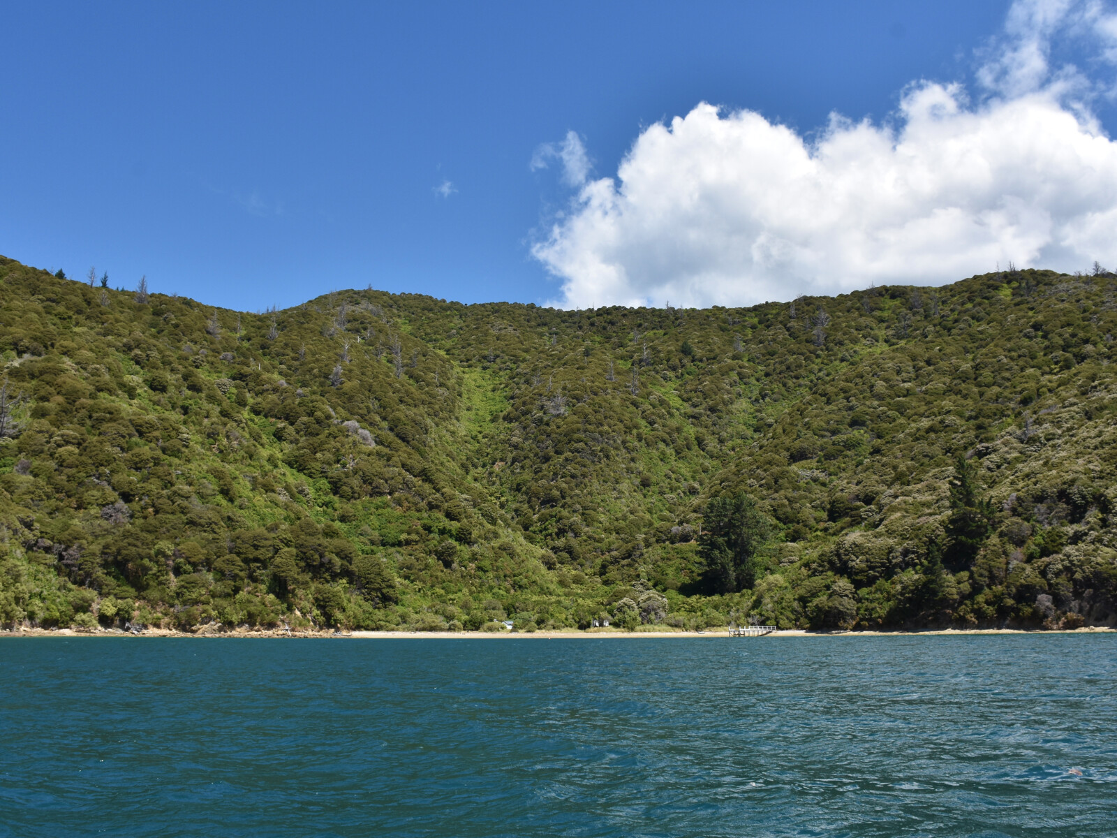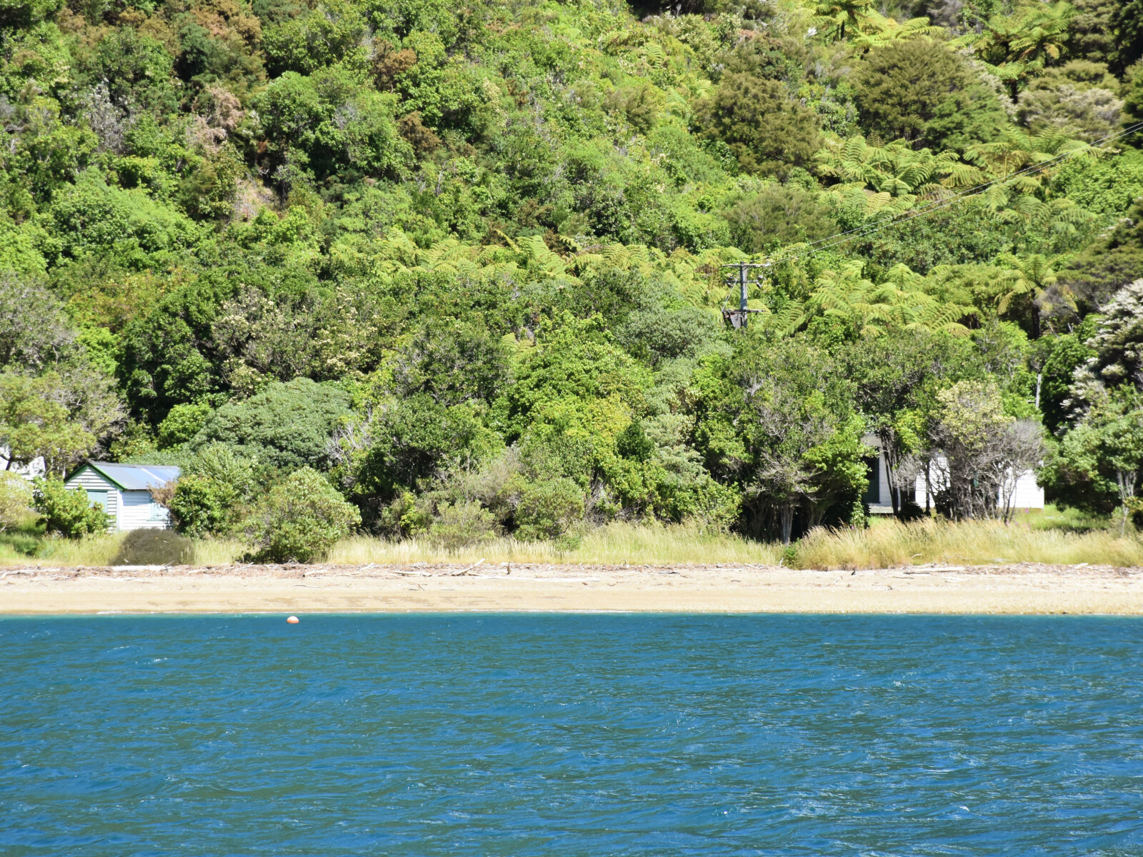 This bay gives no shelter in prevailing westerly to northerly winds. It has calm water in northerly to southerly winds but in a strong south-easterly to southerly the wind funnels out of it with considerable force.