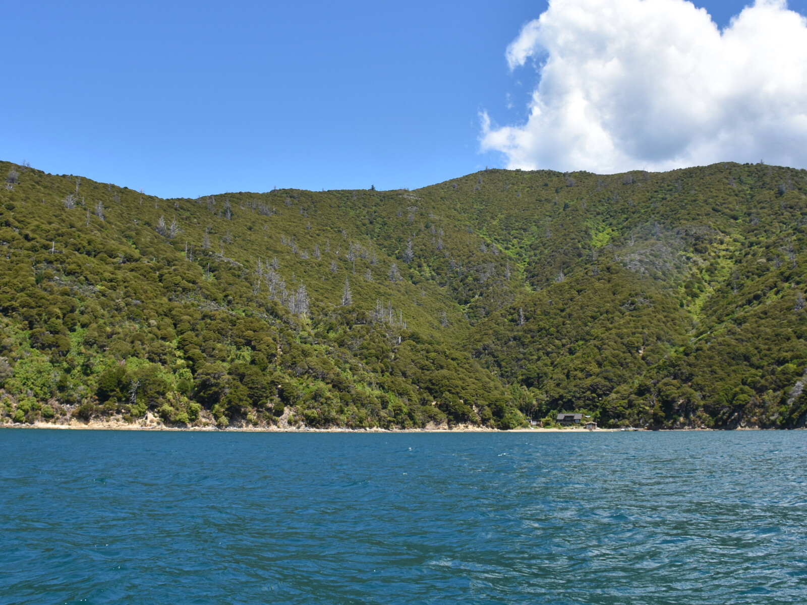 This bay gives no shelter in prevailing westerly to northerly winds. It has calm water in northerly to southerly winds but in strong south easterly to southerly the wind funnels out of it with considerable force.