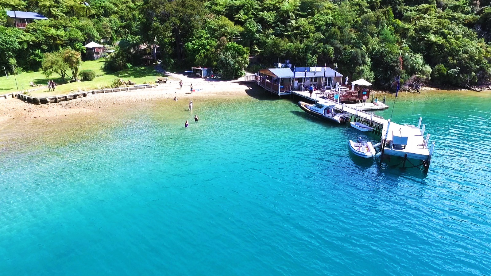 Punga Cove has a wharf, moorings and licensed restaurant.