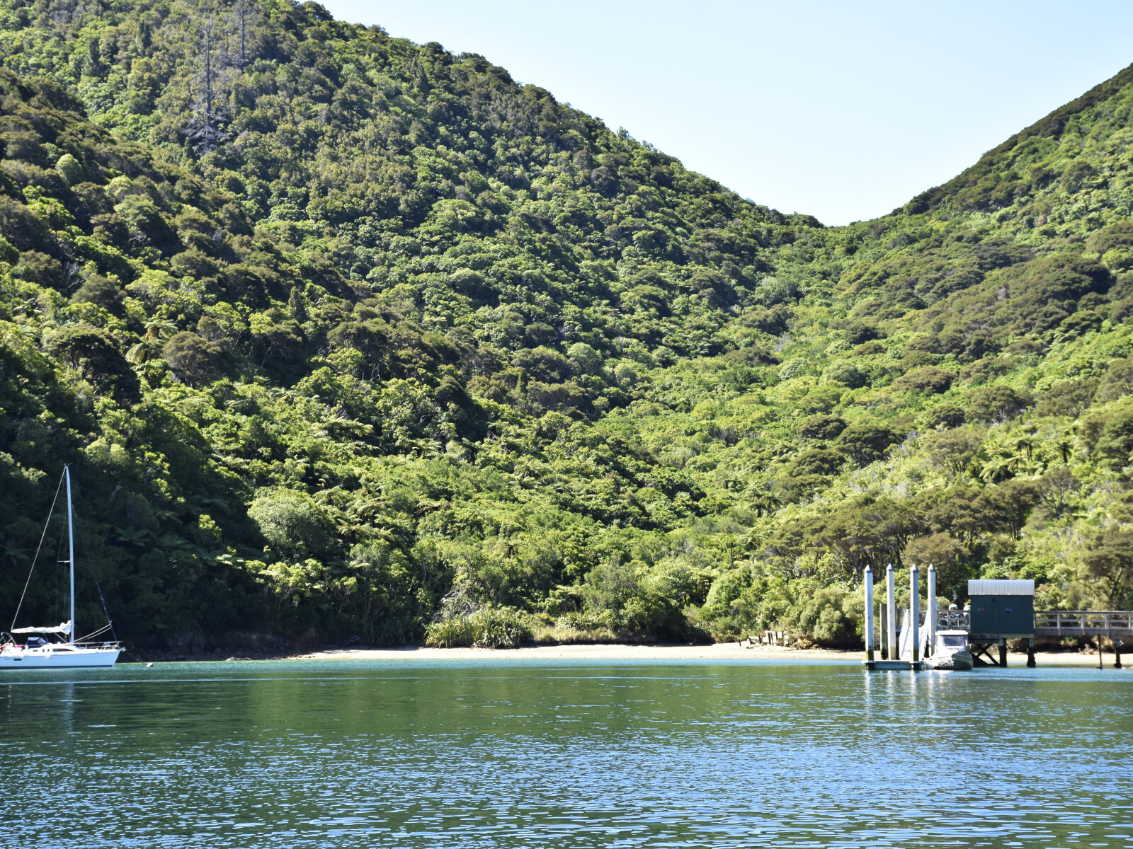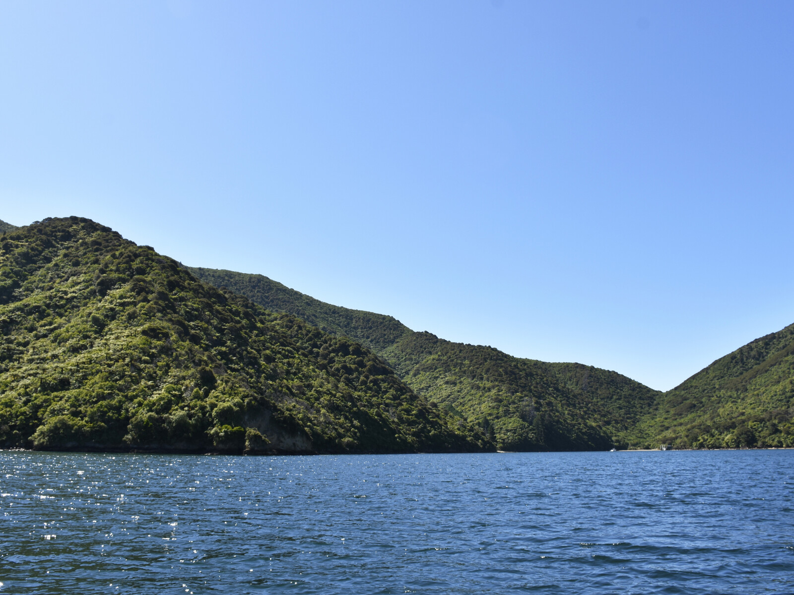 The view from the top into Queen Charlotte on one side and Keneperu Sound on the other is worth a quick stop and photo